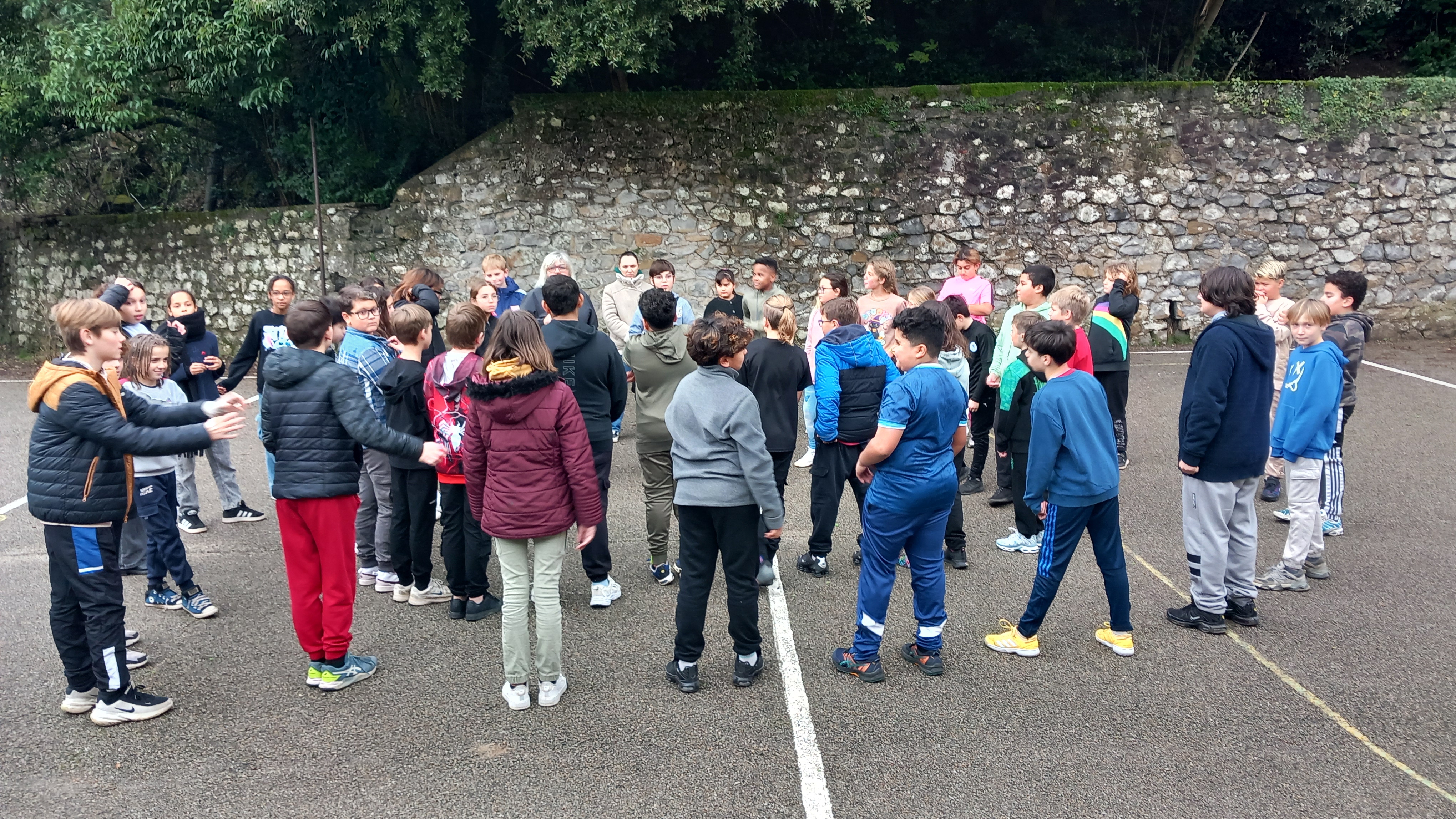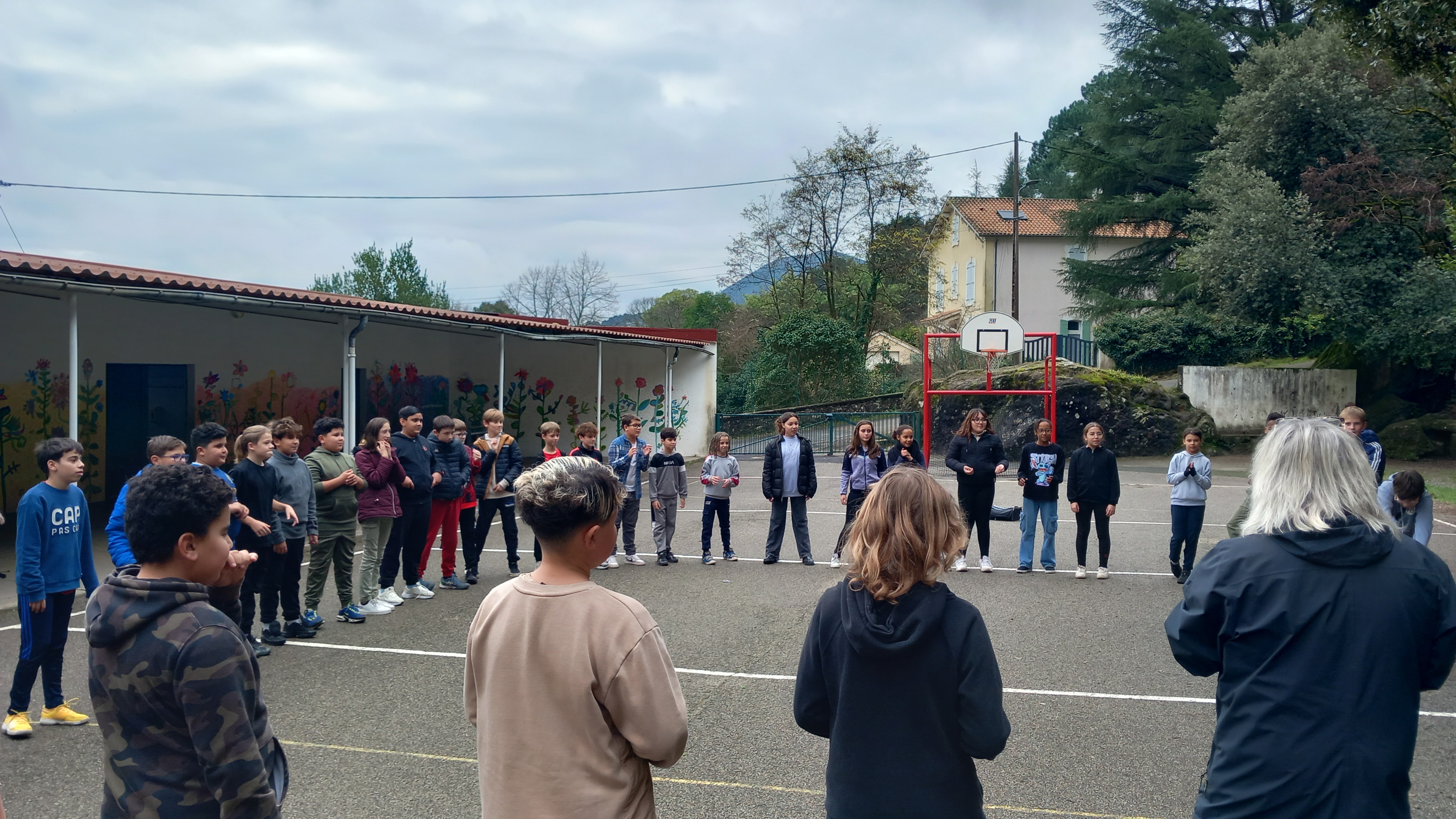 La visée de cette restitution devant les élèves de CM avait l'ambition de partager le plaisir de lire, d'interpréter et de jouer avec les mots. Cette rencontre s'est bien déroulée en extérieur; plusieurs élèves ont "joué "le texte, puis le groupe a participé à un atelier de théâtre à travers des exercices d'énergie de groupe et de partage.