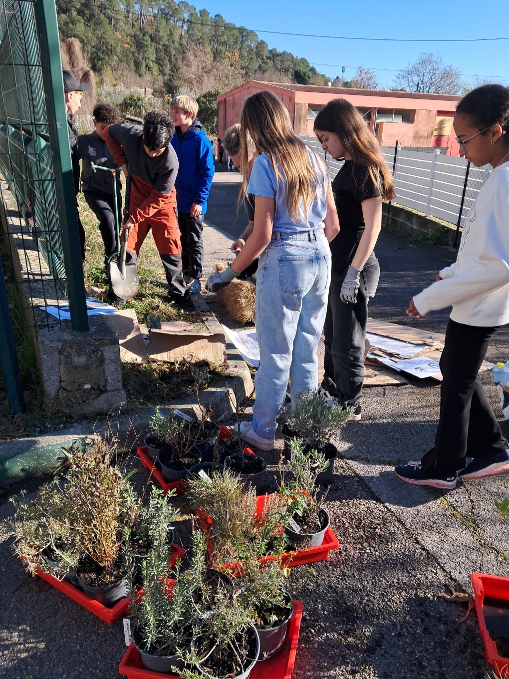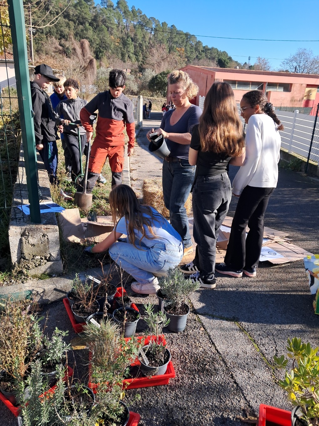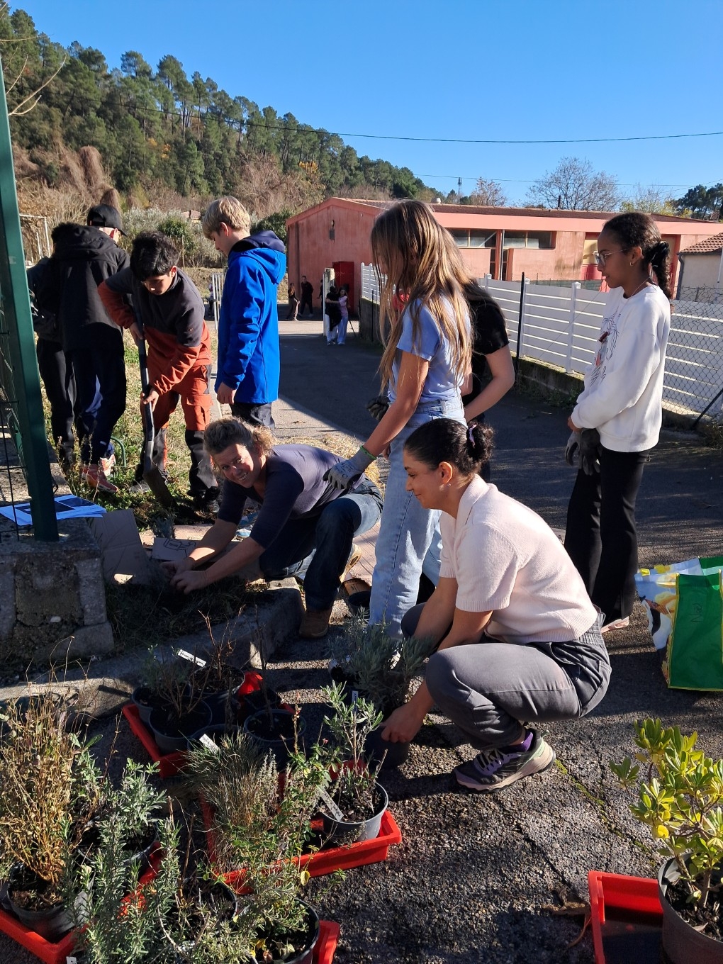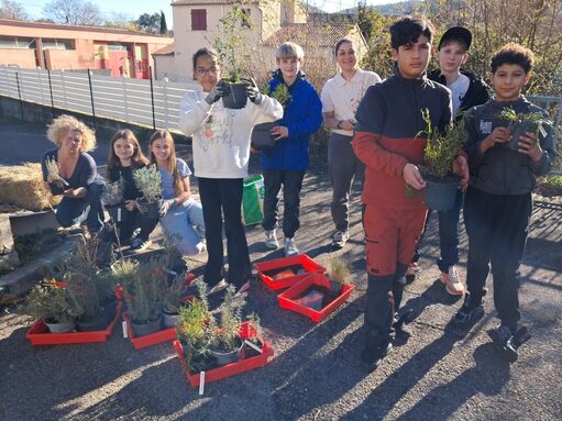Grâce aux plantes offertes par le Conseil départemental, les élèves ont planté divers végétaux afin d'embellir le collège avec l'aide de Mmes Pharose et Van Herwegen.